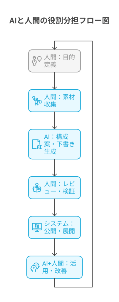 - プロセス: 「構成案→本文生成→整形」というリレー方式で、各工程の得意なツールに仕事を割り振る。