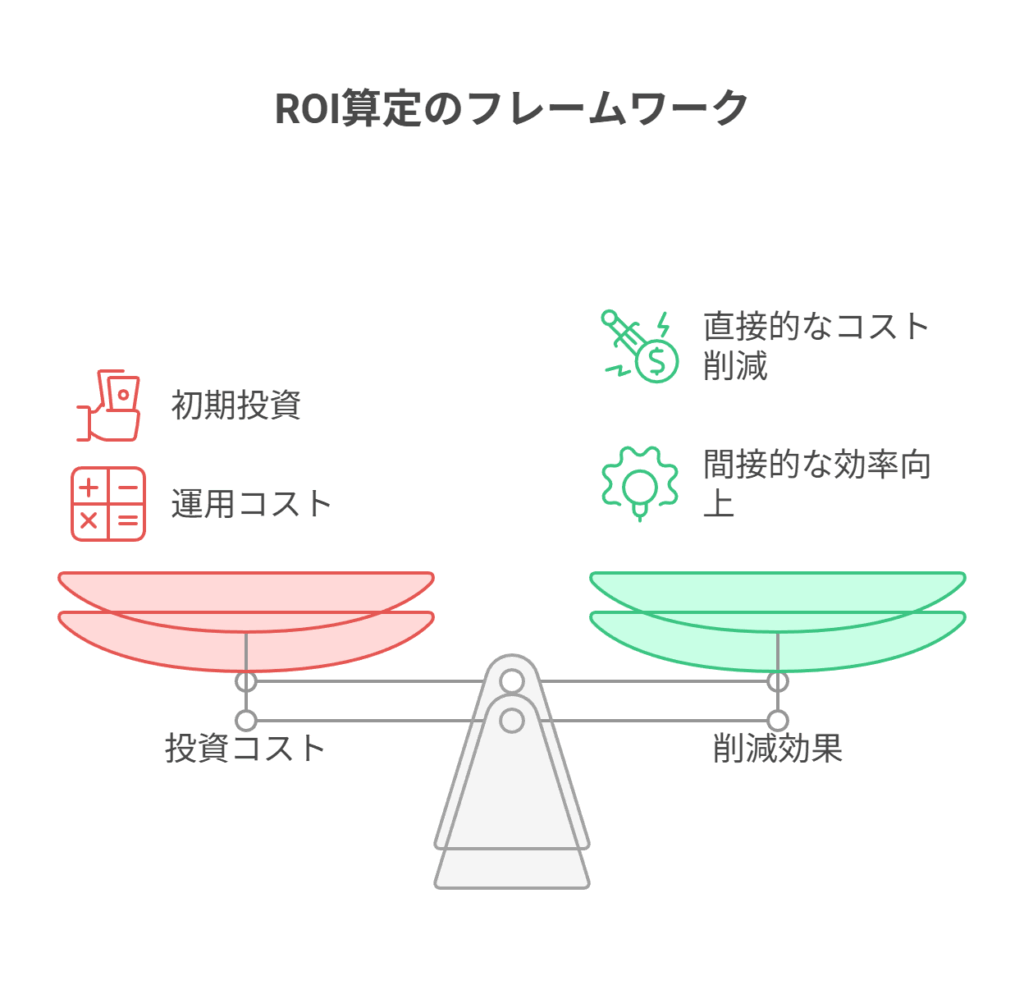 AI導入の意思決定において、経営層が最も気にするのが投資対効果(ROI)です。ここでは、説得力のあるROIを算出するための考え方を解説します。