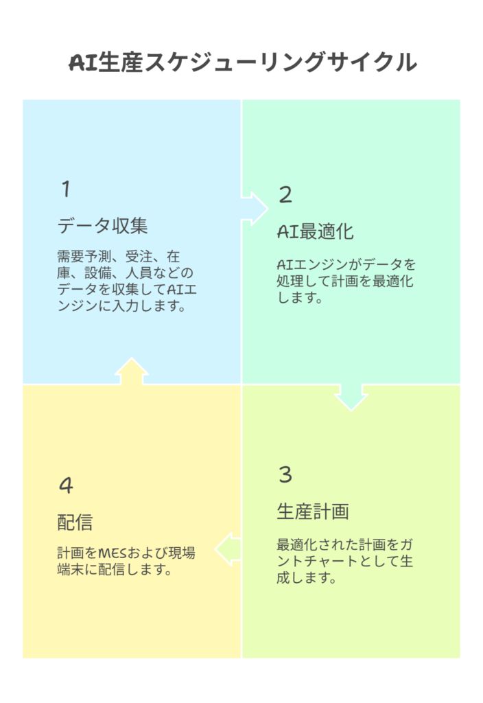 - 注意点: AIによる順序最適化と並行して、段取り作業そのものを短縮する現場改善(SMEDなど)を組み合わせると効果が倍増します。