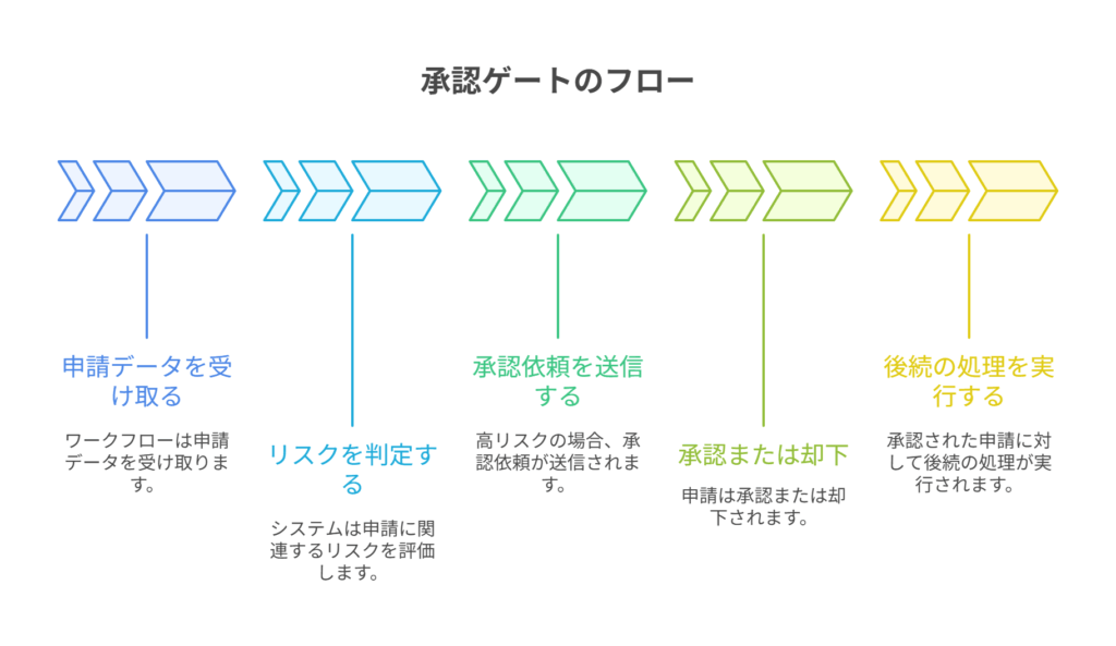 支払処理、顧客アカウントの削除、大量のデータ更新など、リスクの高い操作は、自動実行される前に必ず人間の承認を挟むべきです。この「承認ゲート」をワークフロー自体に組み込むことができます。