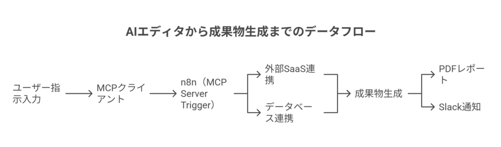 - n8n: 処理が完了したら、実行IDなどを含む結果をMCPクライアントに返却します。